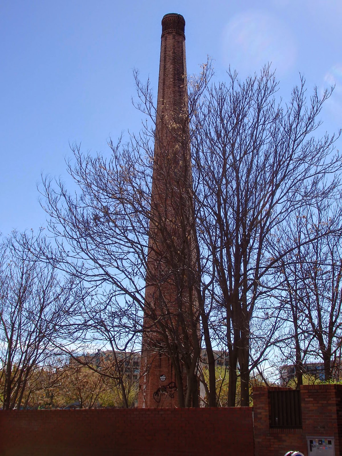 La chimenea es lo único que persiste de la fábrica, demolida en los años noventa. Construida en el año 1915, un pequeño cartel en su base recuerda su pasado: «A la memoria del Excmo. Sr. Don José Antonio De Articas Sanz, fundador de Opidación Industrial S.A. a la que perteneció esta chimenea».