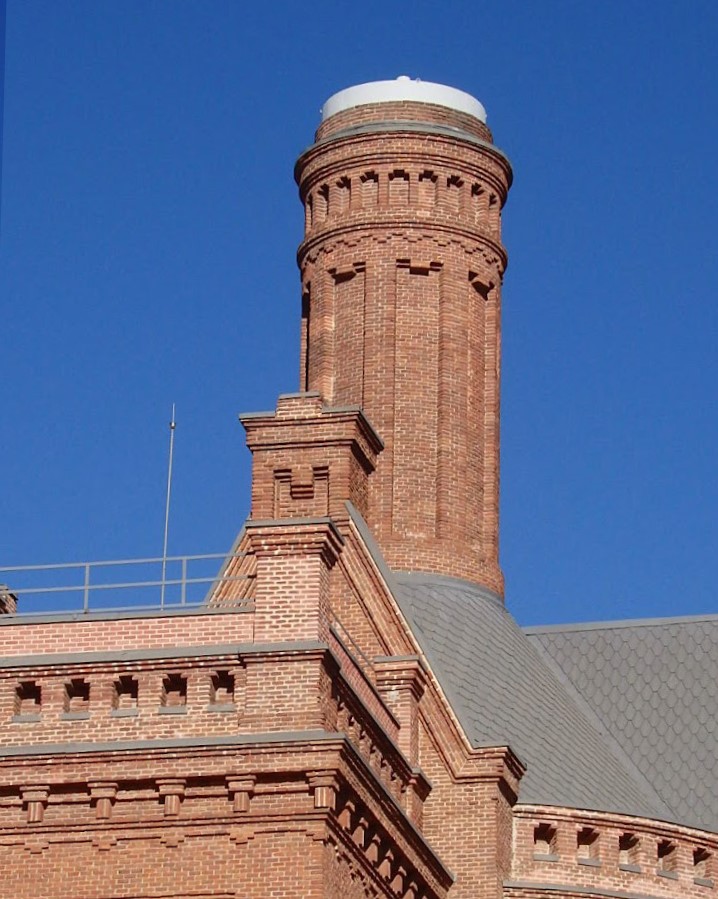 Es hora de tomar algo… Visitamos la CHIMENEA DE LA ANTIGUA FÁBRICA DE CERVEZAS EL ÁGUILA situada en la calle Ramírez de Prado 3. Se trata de otro ejemplo supremo de construcción industrial en ladrillo es la Fábrica de Cervezas El Águila, obra de 1912 de Eugenio Jiménez Corera. Los detalles neomudéjares de esta chimenea de Madrid, con remate en sombrerete, son igualmente uno de los mejores de la ciudad.