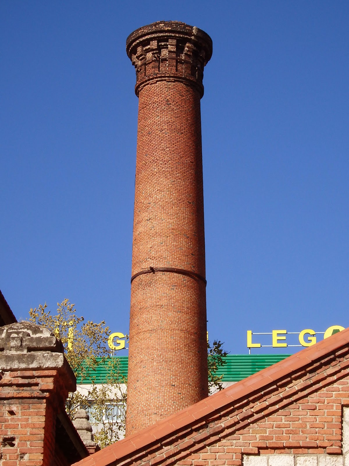 Continuamos con la ruta y encontramos la CHIMENEA EN EL ANTIGUO MATADERO DE MADRID, situada en el Paseo de la Chopera 2. Todo el conjunto de Luis Bellido es una joya del patrimonio industrial, y de la arquitectura del ladrillo madrileño. El Matadero es una obra de 1907 y hoy, de manera más que acertada, se ha transformado en centro cultural. Cuenta con una chimenea de singular presencia.