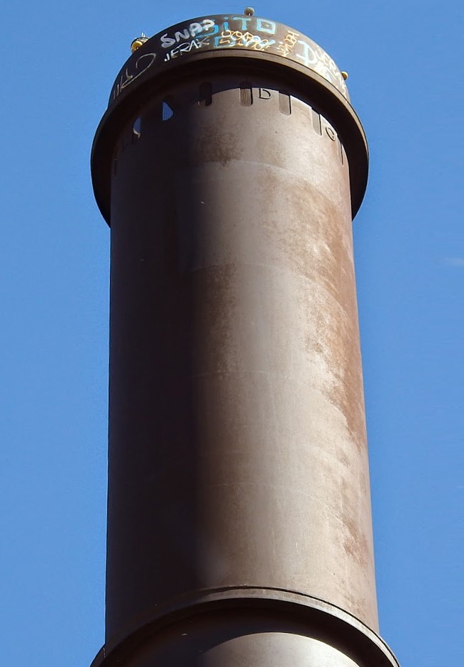 Continuamos la visita con la chimenea situada en el paso peatonal “PUERTA DEL SUR” en el precioso parque de Tierno Galván, en la calle Santa Catalina, en el parque situado detrás de la Estación de Delicias.
