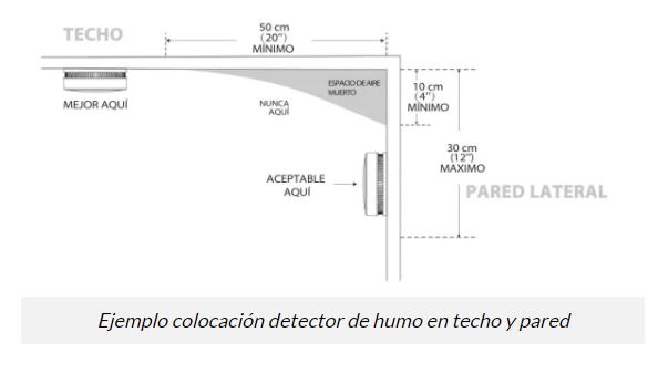 Si el detector se instala en una pared lateral, deberá estar a una distancia de entre 10-30cm por debajo del techo.