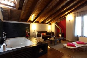 El Hotel Iribarnia, es un hotel con Chimenea con mucho encanto situado en la localidad de Lantz, famosa por su espectacular carnaval. Con un entorno natural privilegiado, es perfecto para conocer el impresionante patrimonio de Navarra. Historia y cultura, naturaleza, turismo activo todo en el entorno de este precioso hotel que además se encuentra a pocos kilómetros de Pamplona. Ahora que llega San Valentín, no dude en elegir una de sus habitaciones con chimenea. La suite además cuenta con una espectacular bañera de hidromasaje. Es el hotel perfecto para hacer escapada romántica.