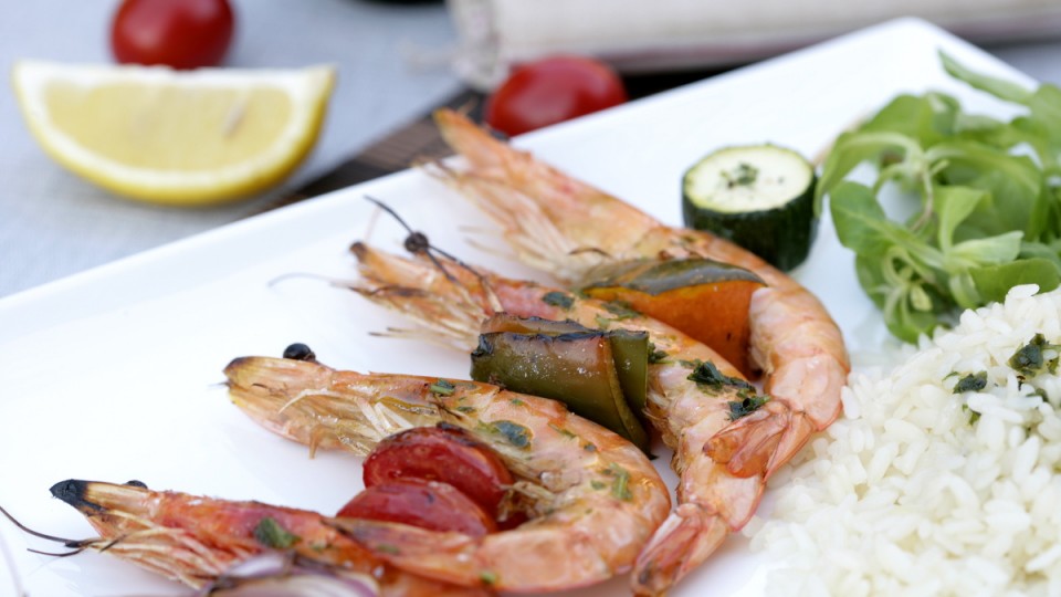 BROCHETAS DE LANGOSTINOS Y VERDURAS