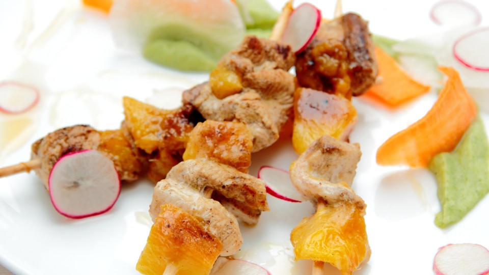 BROCHETAS DE PESCADO CON MANGO