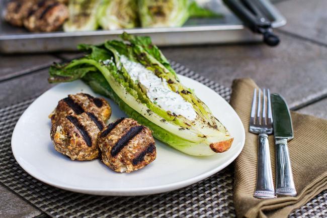 La clave está en cortar la lechuga romana por la mitad (a lo largo) y pasarla por la parrilla hasta que queda crujiente por fuera, y tierna por dentro. Luego puede cortarla y montar una ensalada normal o rellenarla. El resto de ingredientes que quiera poner también puede probar a pasarlos por la parrilla: espárragos, tomates, calabacín… aunque tampoco es necesario.