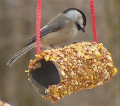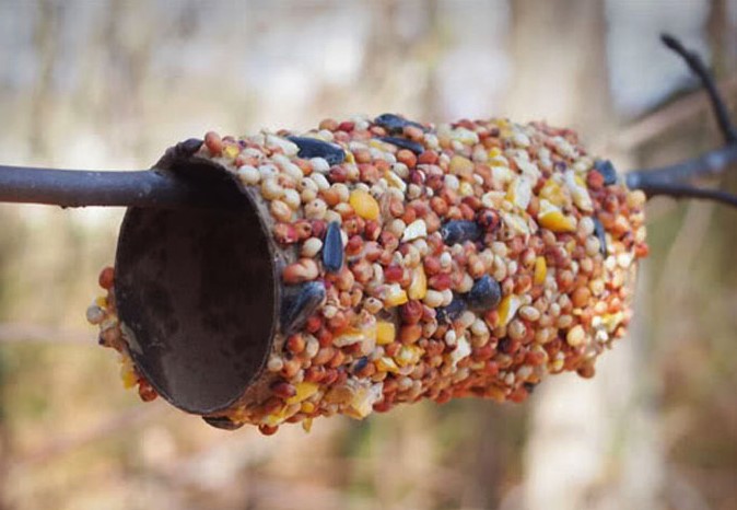 Esta actividad le encantará, sobre todo, a los más pequeños de la casa. Coja un rollo de papel, cúbralo de miel y hágalo rodar sobre un cuenco lleno de comida para pájaros. Ponga el rollo a una rama para que los pajaritos puedan servirse. En caso de no tener ninguna rama, puede colgar el rollo en el árbol. Para ello, antes de cubrirlo de miel haga un par de agujeros en los extremos para pasar una cinta que luego nos servirá para colgar el rollo en el árbol.