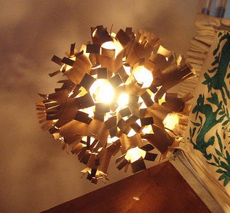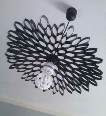 Una vez se seque la pintura la lámpara ya estará lista para colgarla. Para ello, pase el cable  a través del orificio central d la pantalla antes de instalarle en el techo. Puede utilizar un poco de hilo o alambre de pesca transparente para unirlo al cable. Colóquelo ligeramente más alto para evitar el contacto directo con el calor. Le recomiendo que utilice una bombilla LED para su consumo sea mínimo además de evitar posibles problemas con el calor.