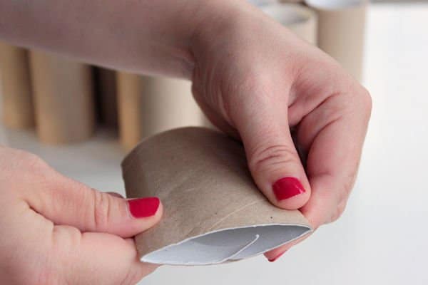 Lo primero que debe hacer es doblar los rollos de papel. Debe arrugarlos a lo largo de los dos bordes opuestos sin aplanar completamente el centro. Debe hacerlo en todos los rollos menos en uno.