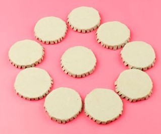 A continuación fabricaremos unas tapas con cartón (vale el de una caja de cereales por ejemplo). La medida será la misma que tengan los rollos de papel. Para elaborarlas debe medir el diámetro de uno de los tubos y dibujar en el cartón 10 círculos con esa medida.