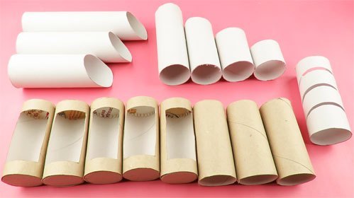 • Rollos de papel higiénico y de cocina gastados para hacer las diferentes alturas (si no tienes rollos de papel de cocina puedes usar de papel higiénico y unirlos por dentro con un trozo de cartulina)
