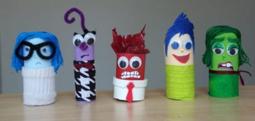 DEL REVÉS: Para realizar las preciosas figuras de la película “Del Revés”  vamos a utilizar los rollos vacíos de papel higiénico, limpia pipas, pintura, goma eva, papeles de colores, tijeras, pegamento y ojos móviles. Verá que bonitas le quedan 🙂