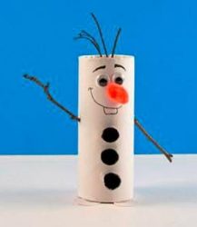 OLAF: Esta sencilla manualidad hará las delicias de esos pequeñ@s enamorados de Frozen 🙂 🙂 🙂  Sólo necesitará un tubo de papel higiénico, cartulina blanca, dos ramitas para los brazos y algunas más pequeñas para el pelo, un rotulador negro, tijeras, pegamento, un palillo, tres pompones negros para los botones, un pompón naranja para la nariz y puede ponerle unos ojos saltones de plástico o pintarlos, como prefiera.