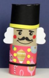 SOLDADITO DE PLOMO: Para hacer este personaje va a necesitar un rollo de papel higiénico gastado, cartulinas y papeles de colores, tijeras y pegamento. Para comenzar con este personaje coloque un papel estampado  en la parte de abajo de su rollo de cartón (yo sólo tenía a mano uno con motivos navideños). Con una tira bastante ancha de cartulina negra haga la parte del sombrero que puede terminar decorando con una tira de cartulina amarilla, al igual que el traje al que puede añadir unos botones y un cinturón. Le puede añadir un poco de pelo blanco en los laterales y personalizar la cara como más le guste, unos bigotes, la sonrisa, unos coloretes y unos ojos simpáticos y estará listo 😉