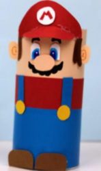 SÚPER MARIO: Para hacer este personaje va a necesitar un rollo de papel higiénico gastado, cartulina de colores, rotuladores, pegamento de barra, tijeras y papeles de colores. Comience cubriendo el rollo de cartón con papel asalmonado, otro de color rojo y otro de color azul. Coloque unos tirantes azules y unos botones amarillos. Con cartulina marrón haga los zapatos. En un redondel de color blanco le haga la característica M que lleva en la gorra. Con cartulina roja haga la gorra y no sin olvidar la parte de la visera. Pegue todo bien. Continúe con la cara, haga unas orejas y sus características patillas. Recorte y dibuje los ojos y también una nariz. Ya para terminar dibuje las cejas y su característico bigote.