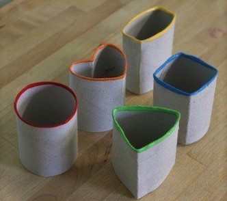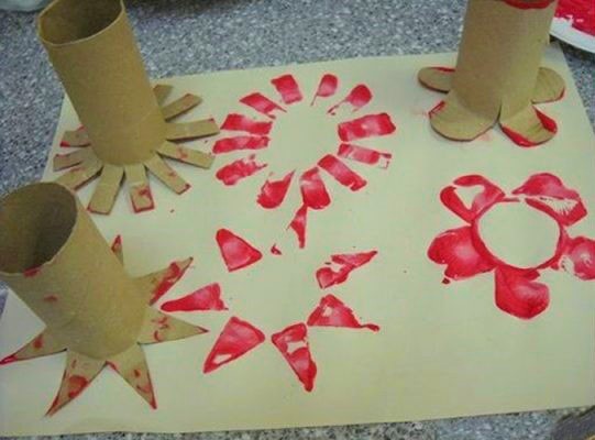 SELLOS: La manualidad para niños en toda regla. De hecho puede usar los restos de cartón de otras manualidades. Lo único que hay que hacer es doblar el cartón de acuerdo con la forma deseada, sumergir la base del tubo en la témpera y el sello está listo 🙂